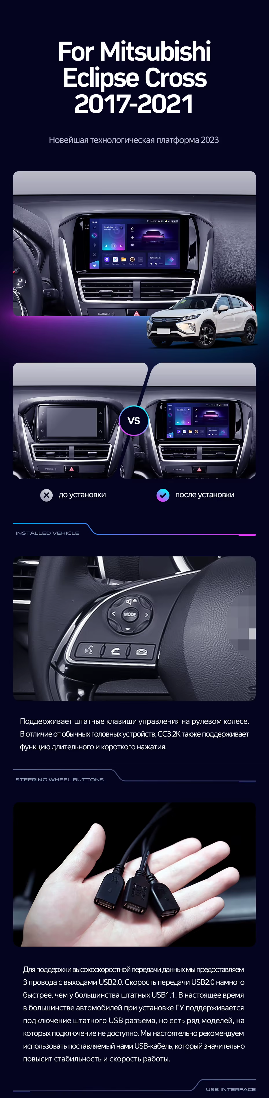 Штатная магнитола Teyes CC3 2K 4/32 Mitsubishi Eclipse Cross 1 (2017-2021) F1 - купить всего за 39 940 руб. в интернет-магазине в Стерлитамаке Teyes.com.ru. ✓ Самый лучший выбор мультимедиа ✓ Лучшая замена штатному ГУ ✓ Тел. +7 (800) 775-31-74