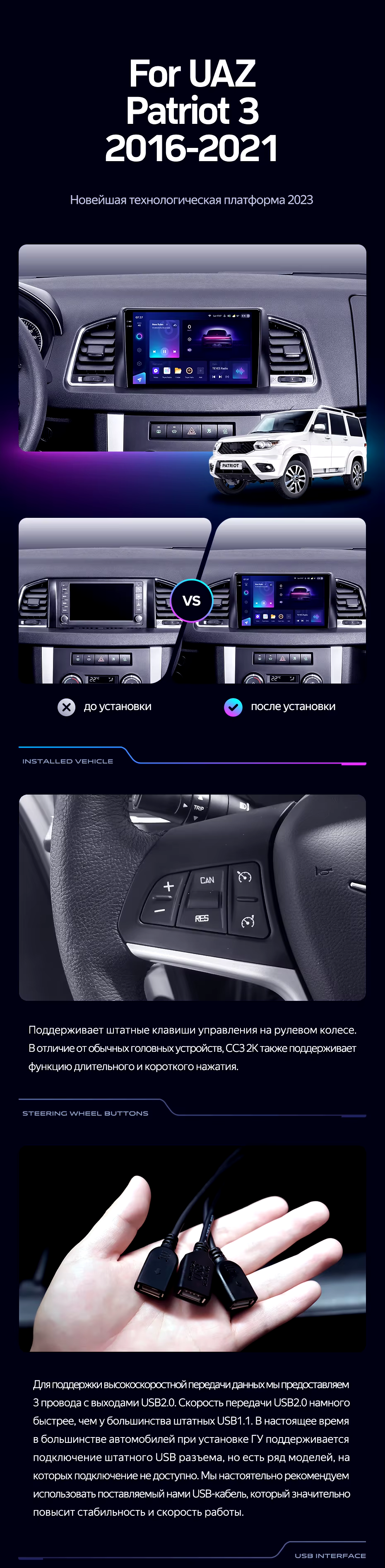 Штатная магнитола Teyes CC3 2K 4/32 UAZ Patriot 3 (2016-2021) F1 - купить всего за 39 100 руб. в интернет-магазине в Стерлитамаке Teyes.com.ru. ✓ Самый лучший выбор мультимедиа ✓ Лучшая замена штатному ГУ ✓ Тел. +7 (800) 775-31-74