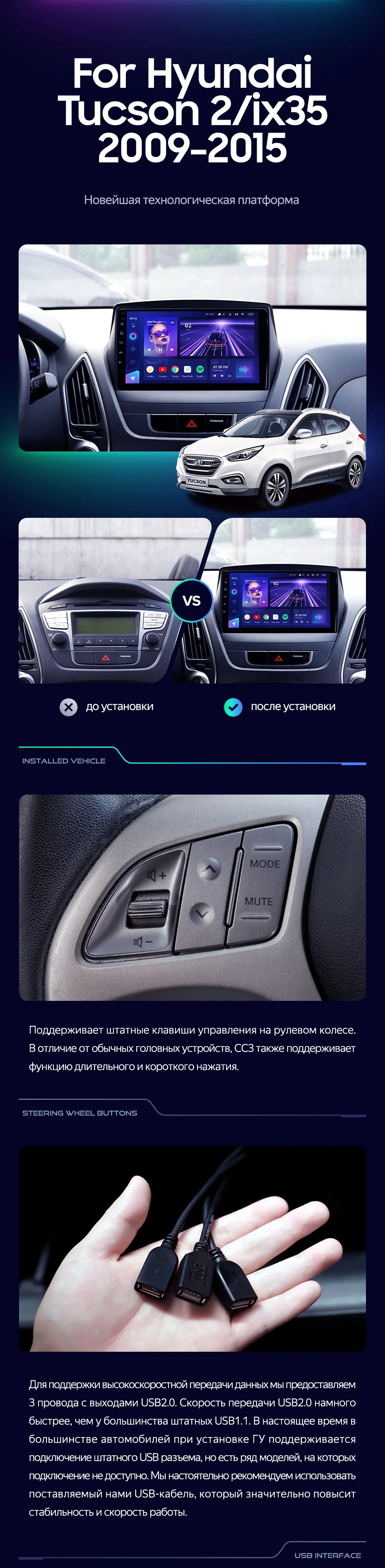 Штатная магнитола Teyes CC3 4/32 Hyundai ix35 (2009-2015) (Tucson 2) Тип-C - купить всего за 33 830 руб. в интернет-магазине в Стерлитамаке Teyes.com.ru. ✓ Самый лучший выбор мультимедиа ✓ Лучшая замена штатному ГУ ✓ Тел. +7 (800) 775-31-74