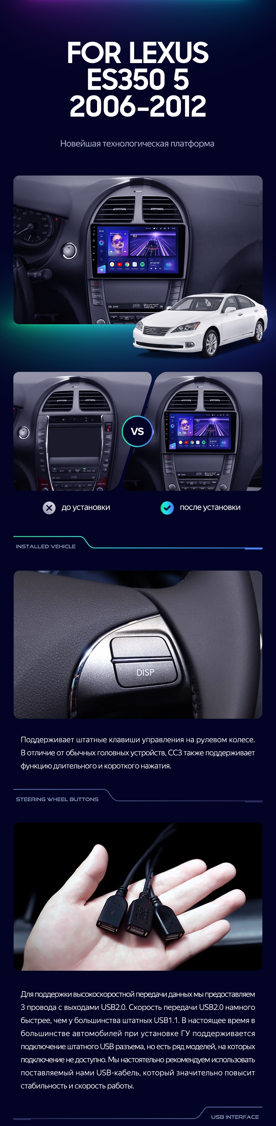 Штатная магнитола Teyes CC3 4/32 Lexus ES350 5 V XV40 (2006-2012) Тип-C - купить всего за 35 730 руб. в интернет-магазине в Стерлитамаке Teyes.com.ru. ✓ Самый лучший выбор мультимедиа ✓ Лучшая замена штатному ГУ ✓ Тел. +7 (800) 775-31-74