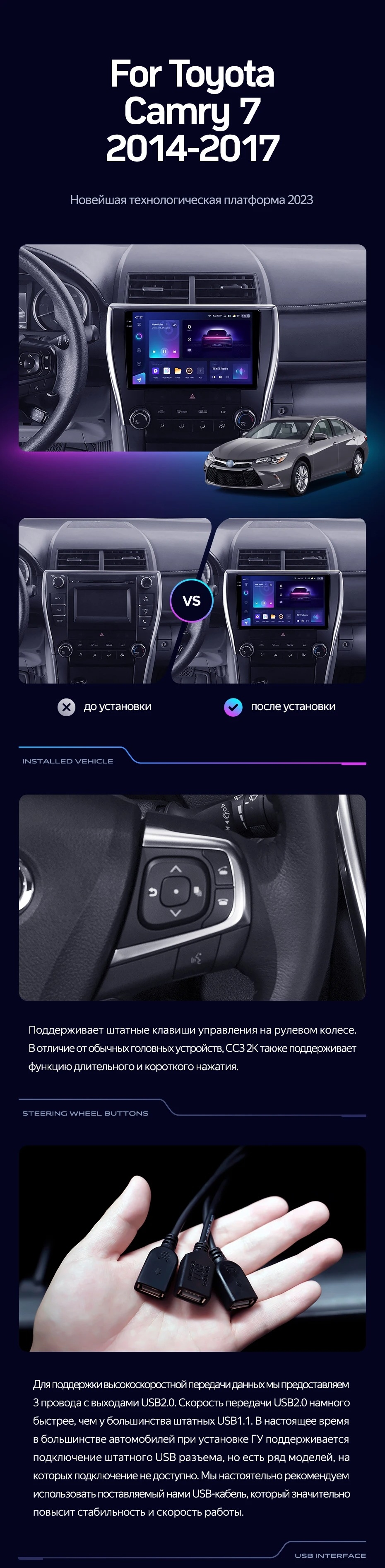 Штатная магнитола Teyes CC3 4/32 Toyota Camry 7 XV 50 55 (2014-2017) (North America) F5 - купить всего за 32 850 руб. в интернет-магазине в Стерлитамаке Teyes.com.ru. ✓ Самый лучший выбор мультимедиа ✓ Лучшая замена штатному ГУ ✓ Тел. +7 (800) 775-31-74