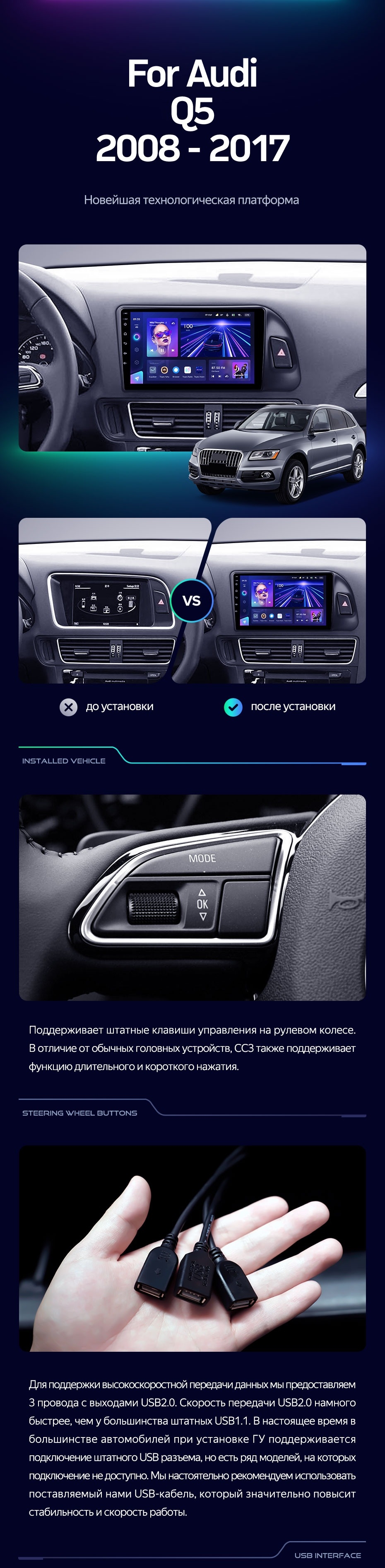 Штатная магнитола Teyes CC3L 4/32 Audi Q5 8R (2008-2017) Тип-A - купить всего за 31 540 руб. в интернет-магазине в Стерлитамаке Teyes.com.ru. ✓ Самый лучший выбор мультимедиа ✓ Лучшая замена штатному ГУ ✓ Тел. +7 (800) 775-31-74