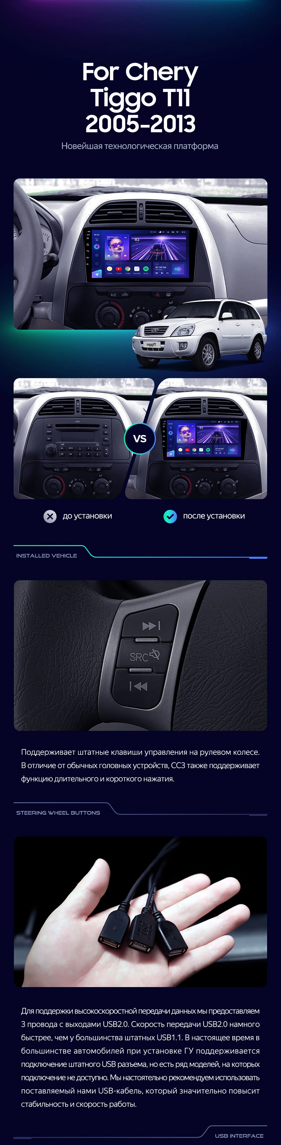 Штатная магнитола Teyes CC3L 4/32 Chery Tiggo T11 1 (2005-2013) - купить всего за 28 100 руб. в интернет-магазине в Стерлитамаке Teyes.com.ru. ✓ Самый лучший выбор мультимедиа ✓ Лучшая замена штатному ГУ ✓ Тел. +7 (800) 775-31-74