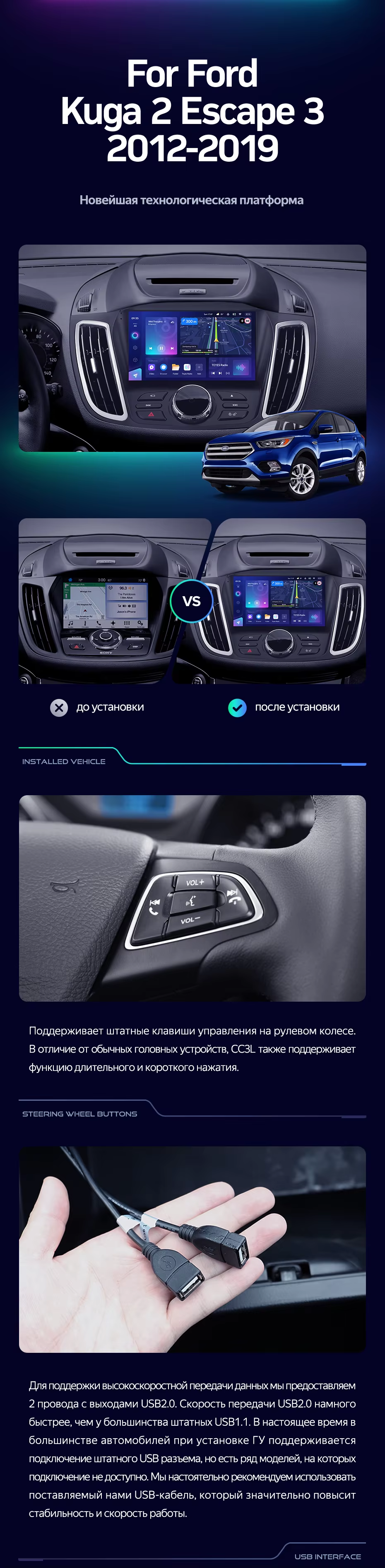 Штатная магнитола Teyes CC3L 4/32 Ford Kuga 2 (2012-2019) Тип-B - купить всего за 32 000 руб. в интернет-магазине в Стерлитамаке Teyes.com.ru. ✓ Самый лучший выбор мультимедиа ✓ Лучшая замена штатному ГУ ✓ Тел. +7 (800) 775-31-74