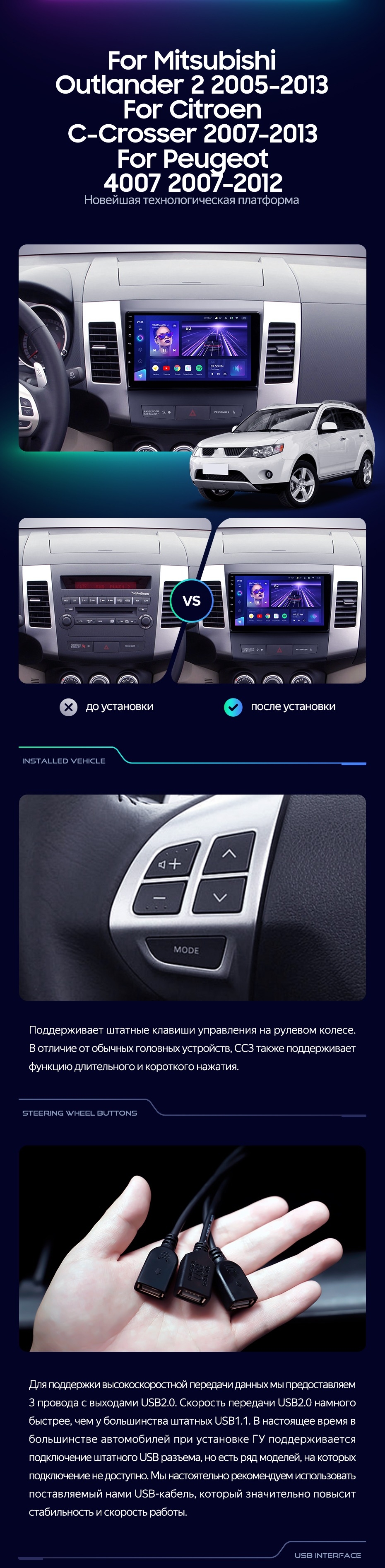 Штатная магнитола Teyes CC3L 4/32 Mitsubishi Outlander 2 (2005-2011) Тип-B - купить всего за 28 600 руб. в интернет-магазине в Стерлитамаке Teyes.com.ru. ✓ Самый лучший выбор мультимедиа ✓ Лучшая замена штатному ГУ ✓ Тел. +7 (800) 775-31-74