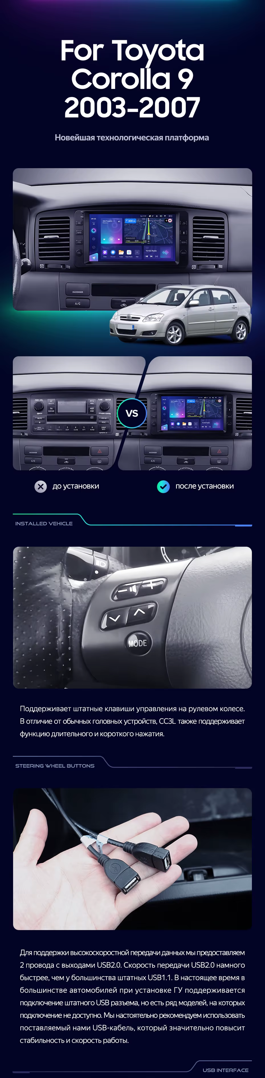 Штатная магнитола Teyes CC3L 4/32 Toyota Corolla 9 E120 E130 (2003-2007) 7" - купить всего за 28 300 руб. в интернет-магазине в Стерлитамаке Teyes.com.ru. ✓ Самый лучший выбор мультимедиа ✓ Лучшая замена штатному ГУ ✓ Тел. +7 (800) 775-31-74