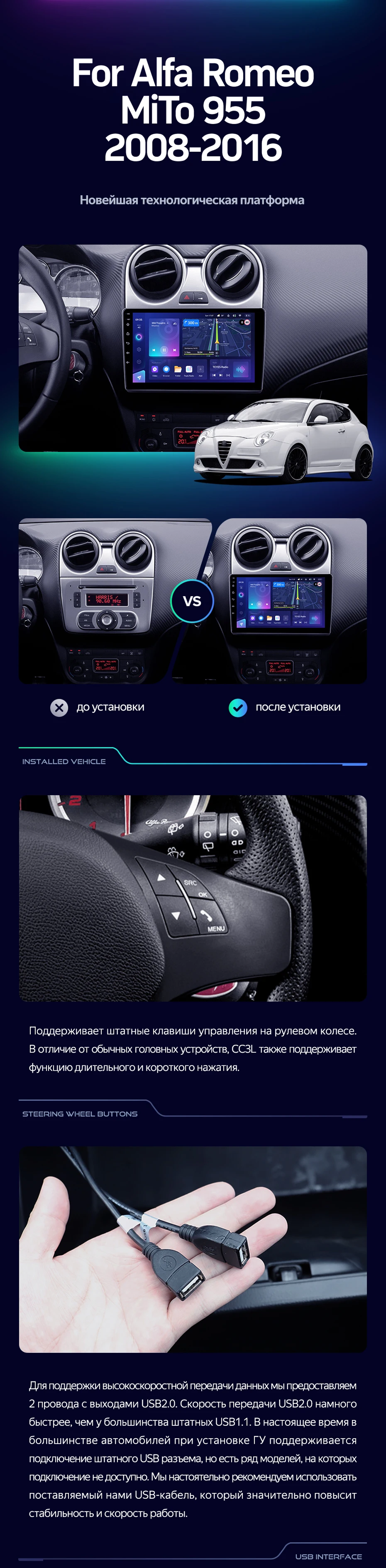Штатная магнитола Teyes CC3L 4/64 Alfa Romeo MiTo 955 (2008-2016) - купить всего за 33 500 руб. в интернет-магазине в Стерлитамаке Teyes.com.ru. ✓ Самый лучший выбор мультимедиа ✓ Лучшая замена штатному ГУ ✓ Тел. +7 (800) 775-31-74