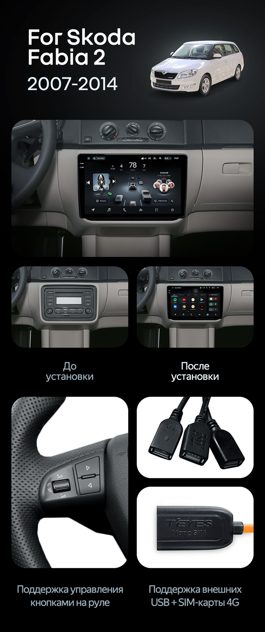 Штатная магнитола Teyes CC4 6/64 Skoda Fabia 2 (2007-2014) - купить всего за 47 800 руб. в интернет-магазине в Стерлитамаке Teyes.com.ru. ✓ Самый лучший выбор мультимедиа ✓ Лучшая замена штатному ГУ ✓ Тел. +7 (800) 775-31-74