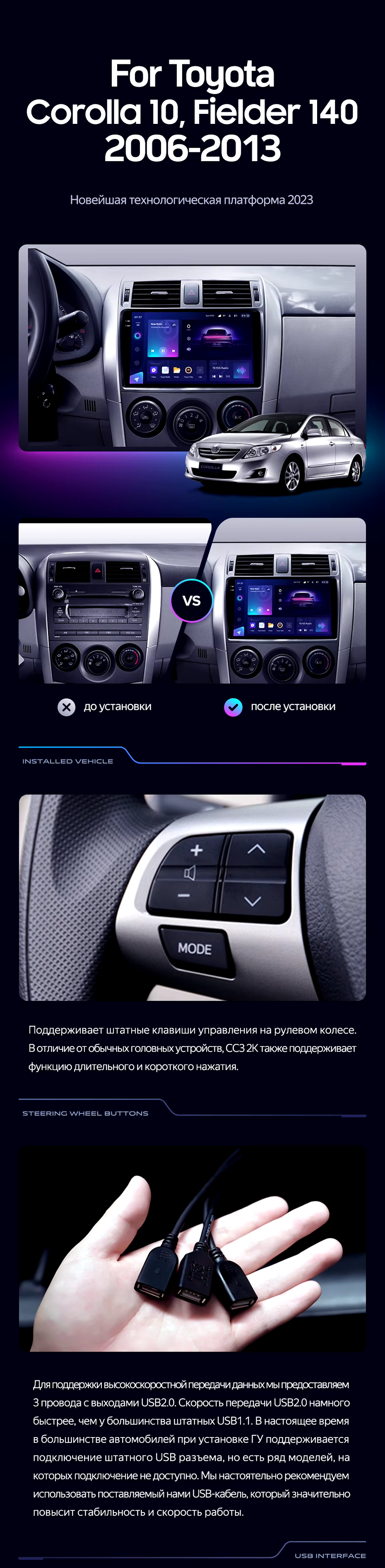 Штатная магнитола Teyes CC4 6/64 Toyota Corolla 10 E140 E150 (2006-2013) Тип-B - купить всего за 42 990 руб. в интернет-магазине в Стерлитамаке Teyes.com.ru. ✓ Самый лучший выбор мультимедиа ✓ Лучшая замена штатному ГУ ✓ Тел. +7 (800) 775-31-74