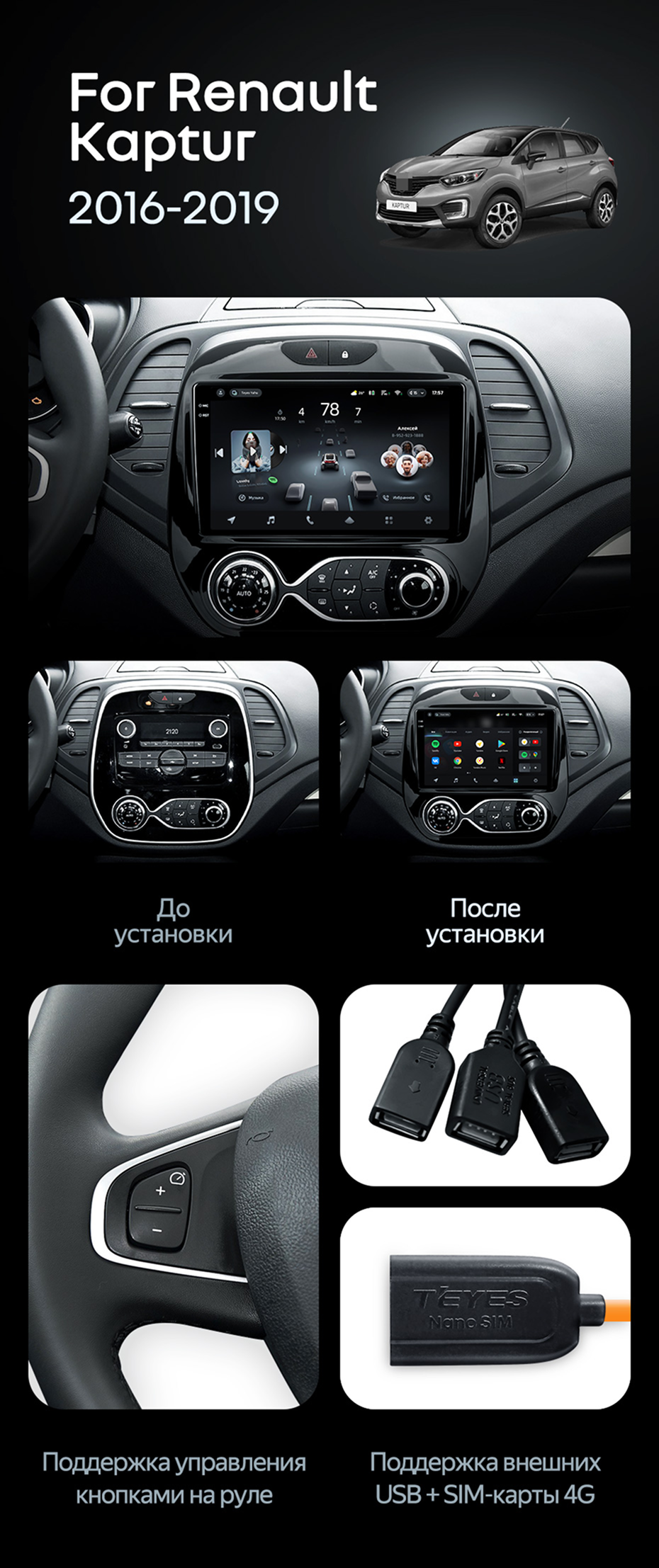 Штатная магнитола Teyes CC4 8/128 Renault Kaptur (2016-2019) F2 - купить всего за 48 620 руб. в интернет-магазине в Стерлитамаке Teyes.com.ru. ✓ Самый лучший выбор мультимедиа ✓ Лучшая замена штатному ГУ ✓ Тел. +7 (800) 775-31-74