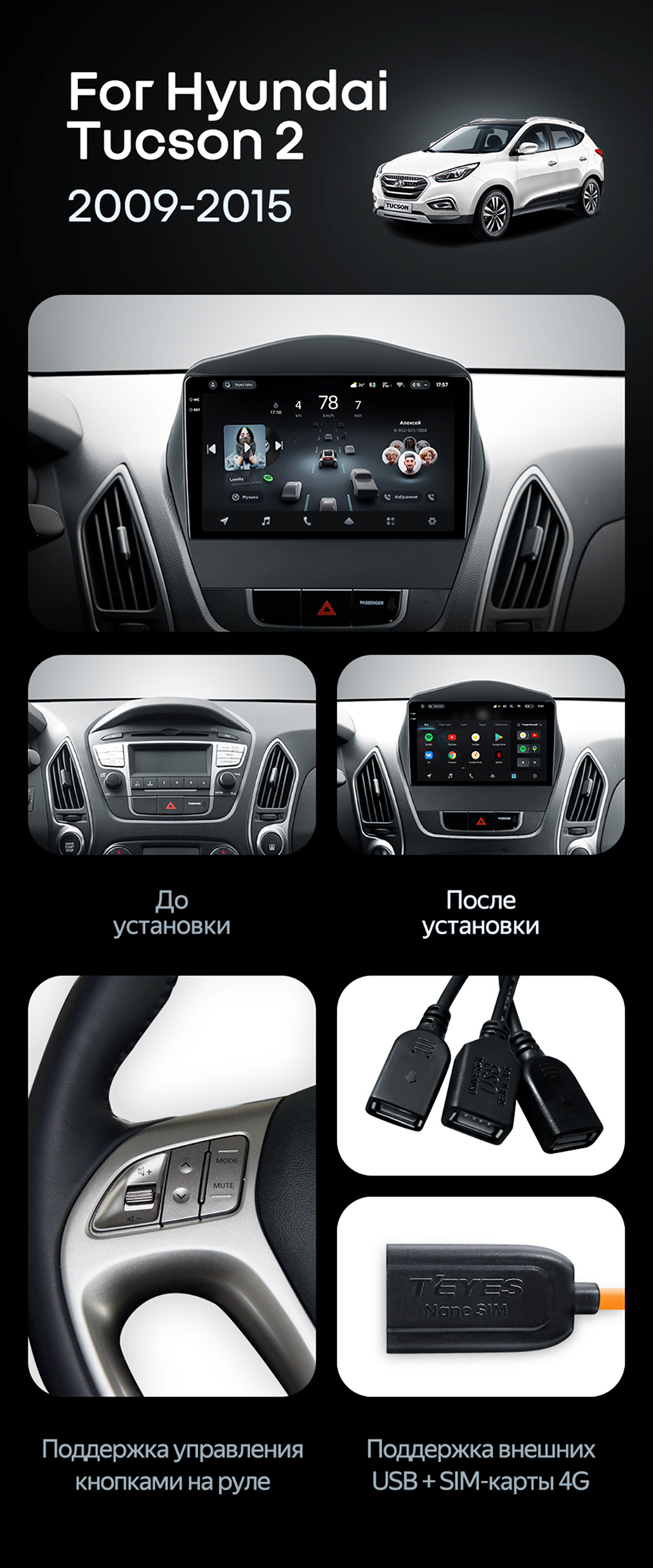 Штатная магнитола Teyes CC4 Pro 8/128 Hyundai ix35 (2009-2015) (Tucson 2) Тип-AB - купить всего за 58 060 руб. в интернет-магазине в Стерлитамаке Teyes.com.ru. ✓ Самый лучший выбор мультимедиа ✓ Лучшая замена штатному ГУ ✓ Тел. +7 (800) 775-31-74