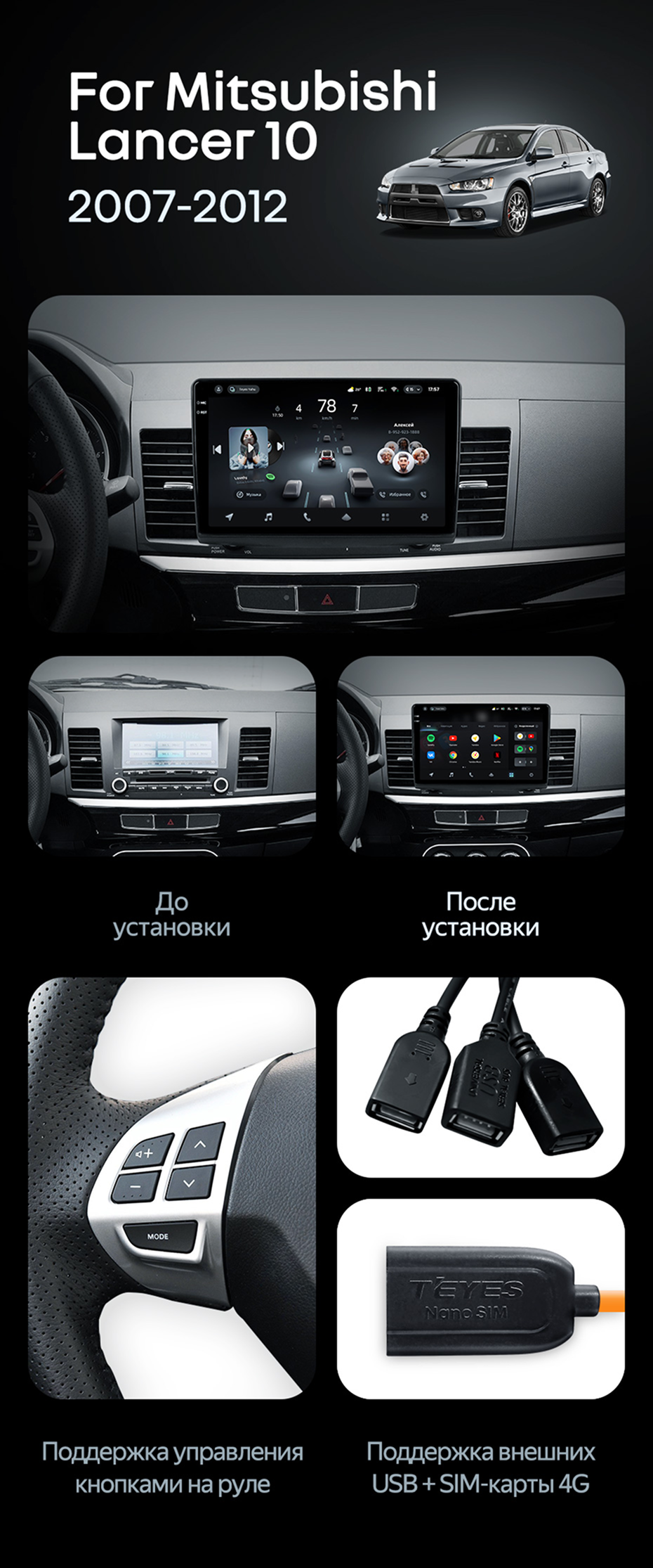 Штатная магнитола Teyes CC4 Pro 8/128 Mitsubishi Lancer 10 CY (2007-2012) Тип-B - купить всего за 60 010 руб. в интернет-магазине в Стерлитамаке Teyes.com.ru. ✓ Самый лучший выбор мультимедиа ✓ Лучшая замена штатному ГУ ✓ Тел. +7 (800) 775-31-74