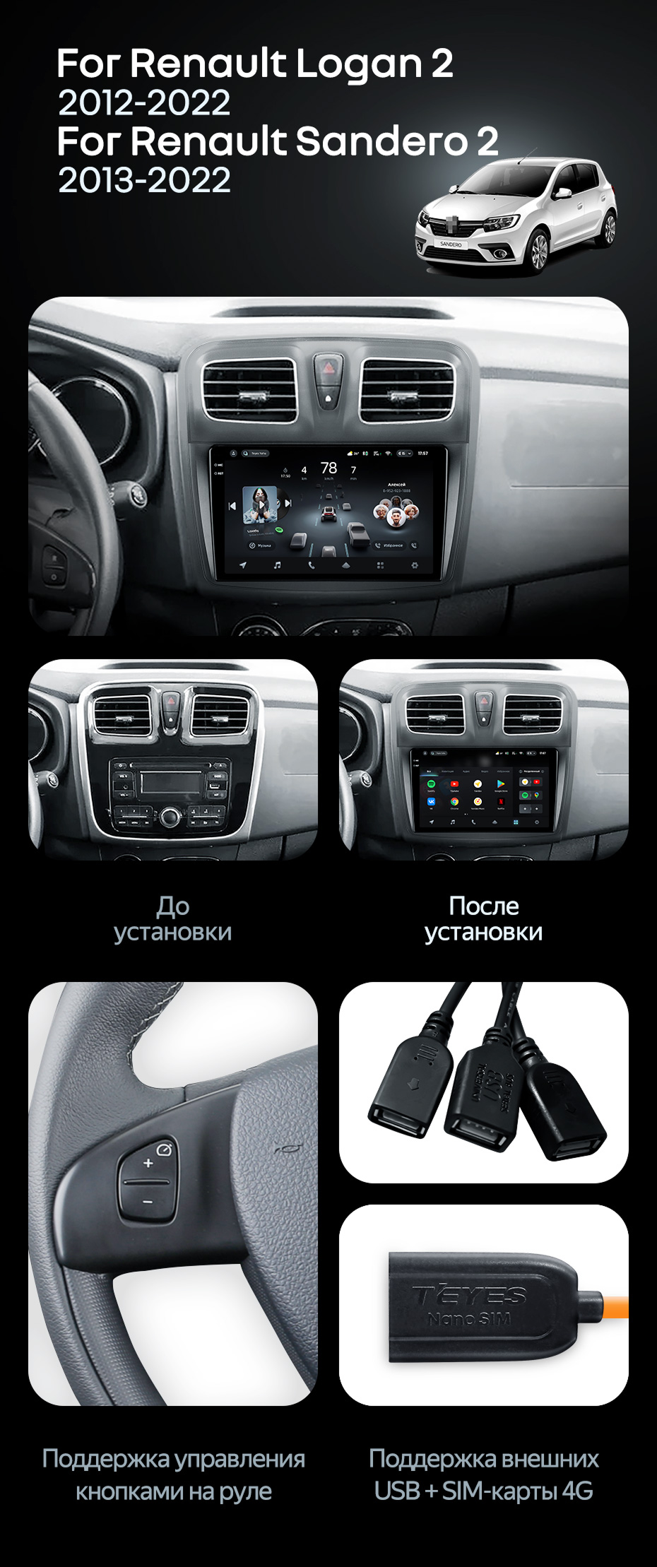 Штатная магнитола Teyes CC4 Pro 8/128 Renault Logan 2 (2012-2022) F2 - купить всего за 58 400 руб. в интернет-магазине в Стерлитамаке Teyes.com.ru. ✓ Самый лучший выбор мультимедиа ✓ Лучшая замена штатному ГУ ✓ Тел. +7 (800) 775-31-74