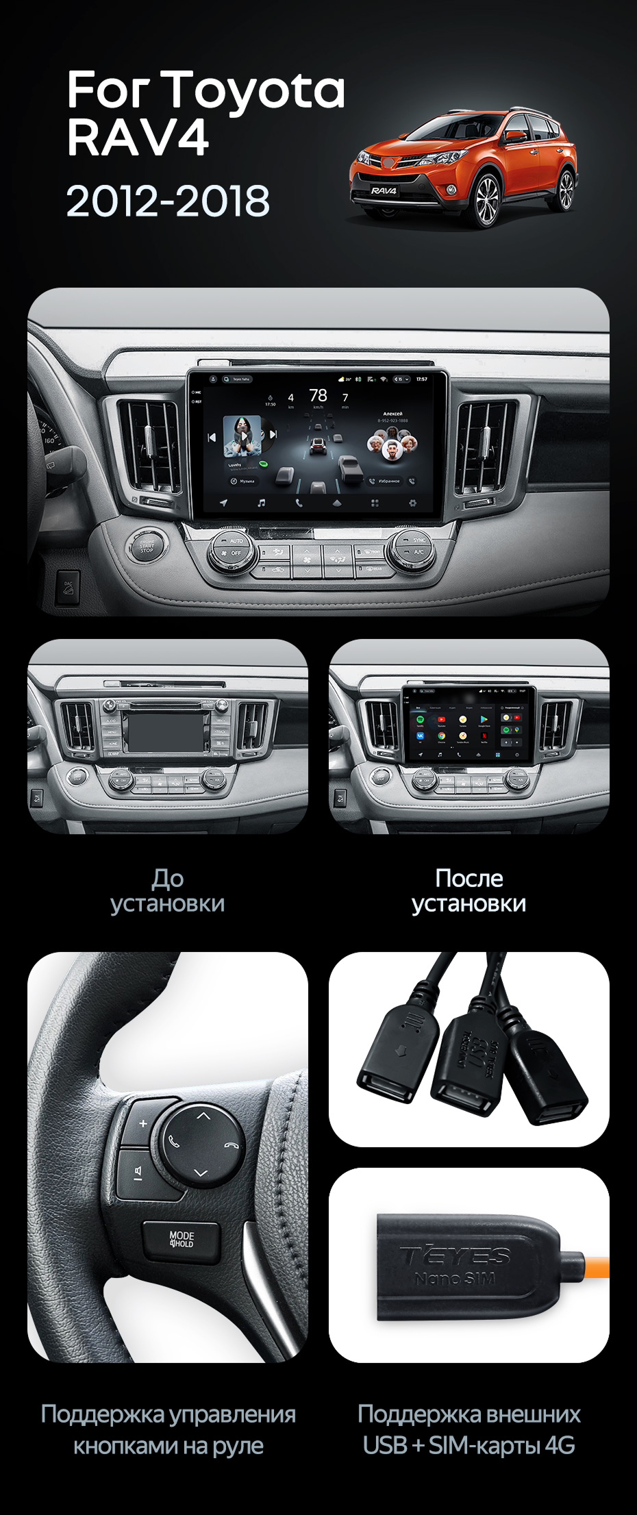 Штатная магнитола Teyes CC4 Pro 8/128 Toyota RAV4 (2012-2018) - купить всего за 58 530 руб. в интернет-магазине в Стерлитамаке Teyes.com.ru. ✓ Самый лучший выбор мультимедиа ✓ Лучшая замена штатному ГУ ✓ Тел. +7 (800) 775-31-74