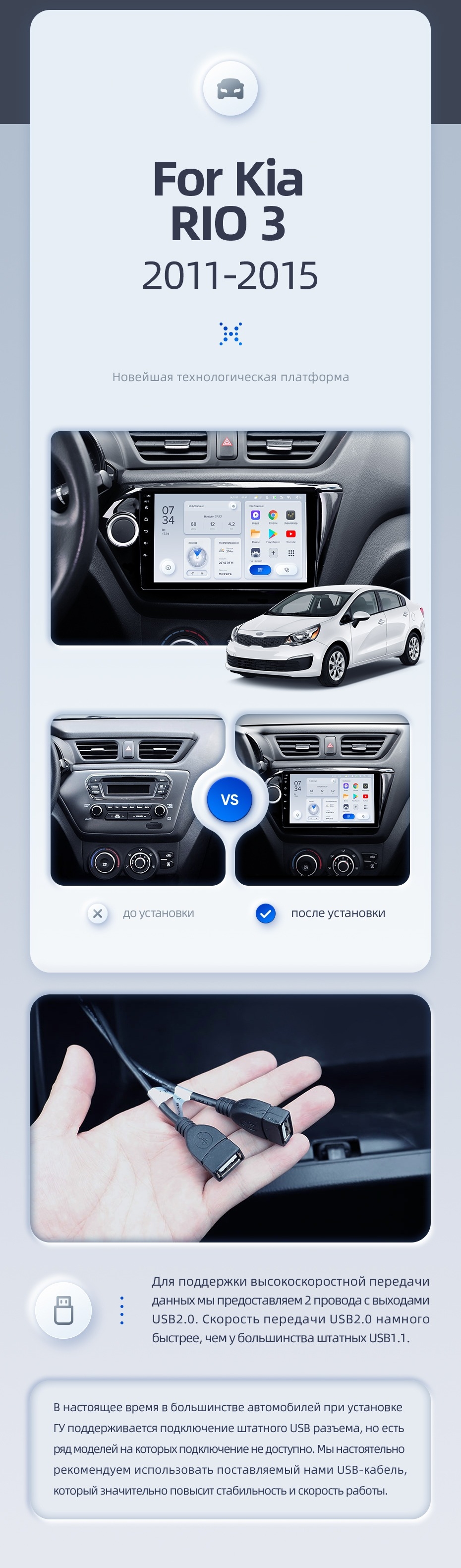| USB | 3×USB 2.0 + USB 3.0 | Доп. аксессуары | Передняя/задняя AHD-камера, DVR-регистратор, TPMS, парковочный OBD, Type-C → HDMI |