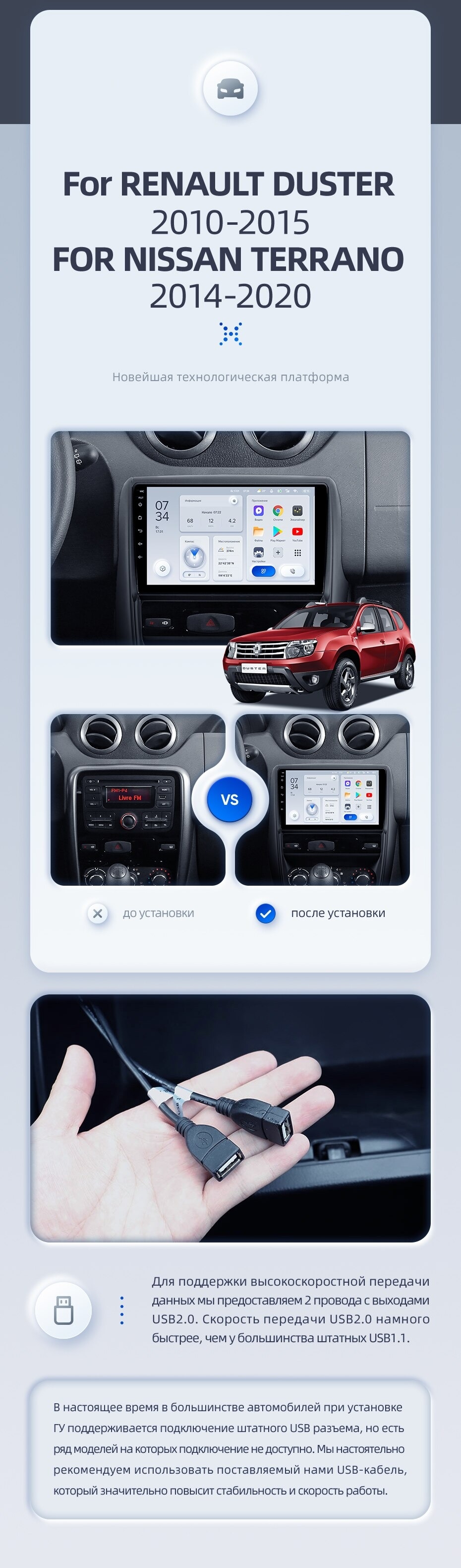 | USB | 3×USB 2.0 + USB 3.0 | Доп. аксессуары | Передняя/задняя AHD-камера, DVR-регистратор, TPMS, парковочный OBD, Type-C → HDMI |