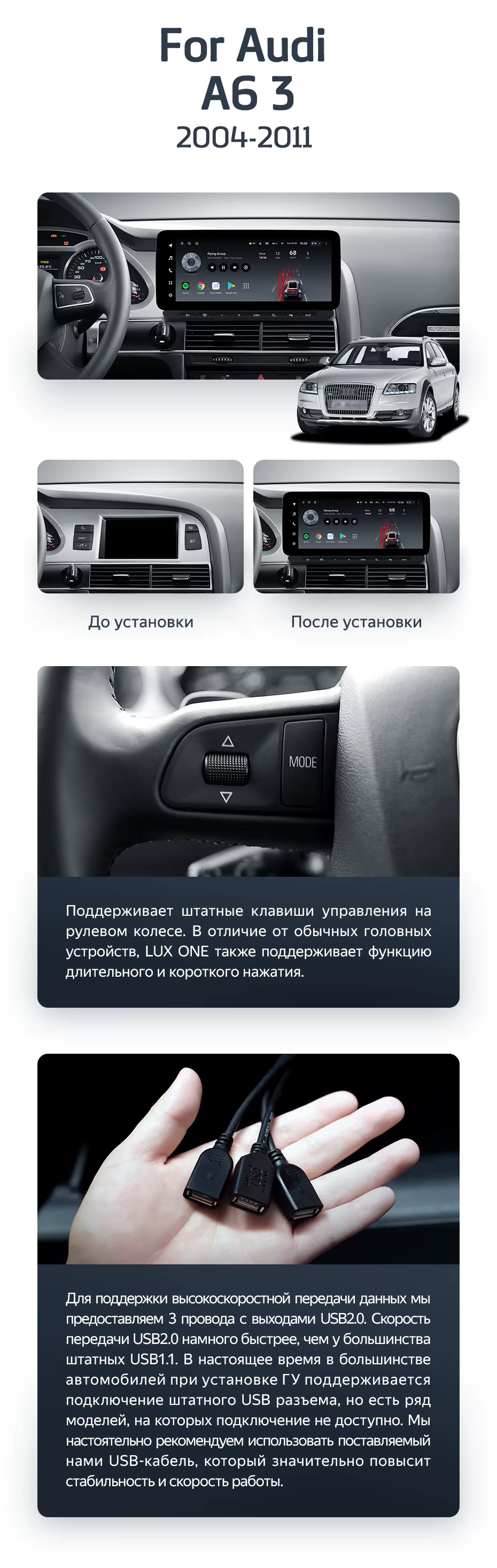 Штатная магнитола Teyes LUX ONE 4/64 Audi A6 3 C6 (2004-2011) - купить всего за 43 400 руб. в интернет-магазине в Стерлитамаке Teyes.com.ru. ✓ Самый лучший выбор мультимедиа ✓ Лучшая замена штатному ГУ ✓ Тел. +7 (800) 775-31-74