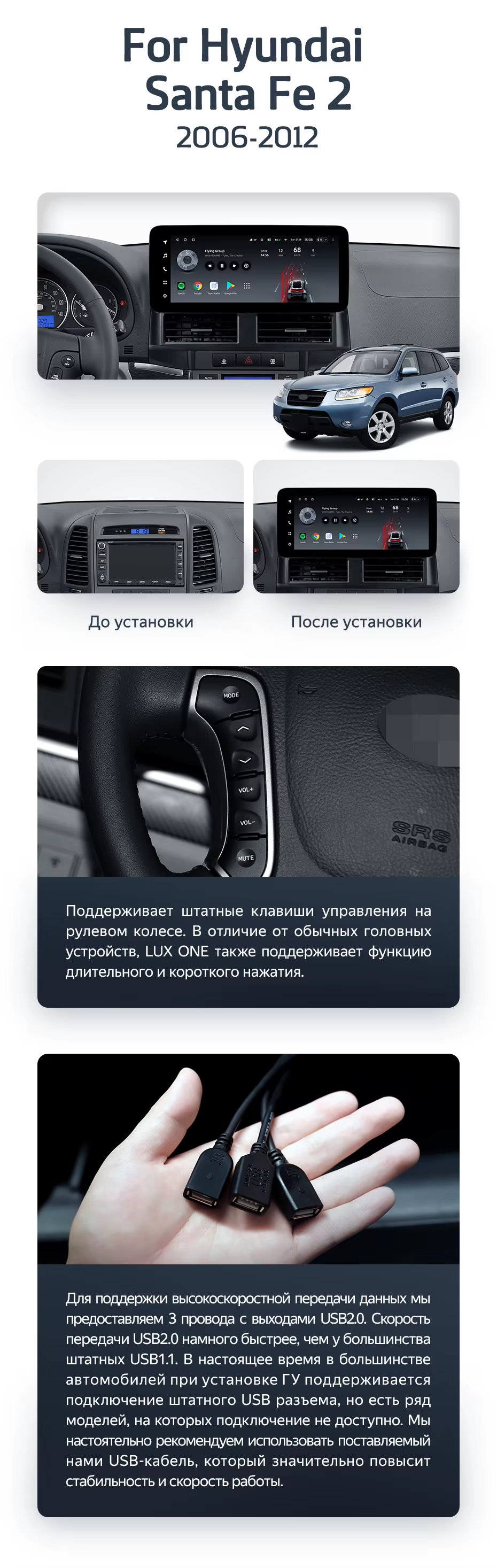 Штатная магнитола Teyes LUX ONE 4/64 Hyundai Santa Fe 2 (2006-2012) - купить всего за 45 300 руб. в интернет-магазине в Стерлитамаке Teyes.com.ru. ✓ Самый лучший выбор мультимедиа ✓ Лучшая замена штатному ГУ ✓ Тел. +7 (800) 775-31-74