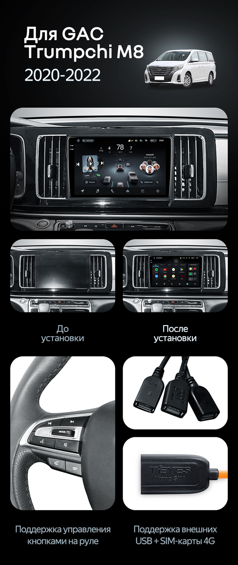 Переходная рамка GAC Trumpchi M8 (2020-2022) (10") - купить всего за 5 400 руб. в интернет-магазине в Стерлитамаке Teyes.com.ru. ✓ Самый лучший выбор мультимедиа ✓ Лучшая замена штатному ГУ ✓ Тел. +7 (800) 775-31-74