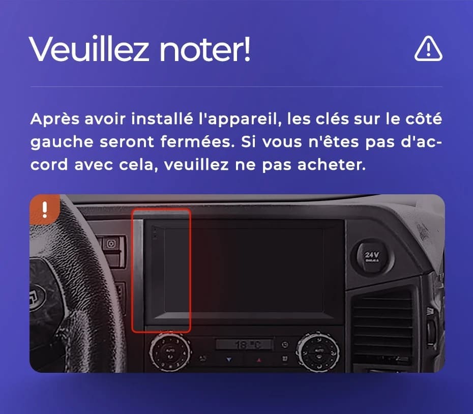 Готовый установочный комплект для магнитолы Mercedes-Benz Actros (2011-2023) 9 дюймов в штатное место, включает переходную рамку и проводку.