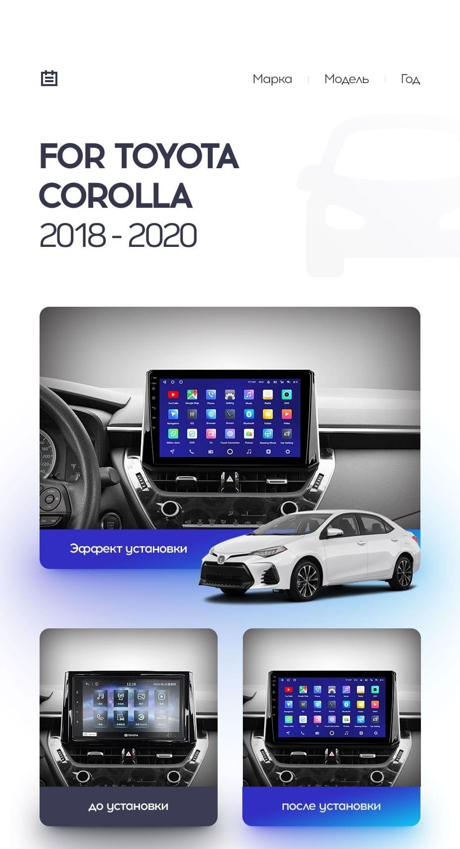 Полный комплект установки магнитолы Teyes с рамкой и проводкой можно выбрать в каталоге штатных магнитол Toyota Corolla 12 (2018-2020).