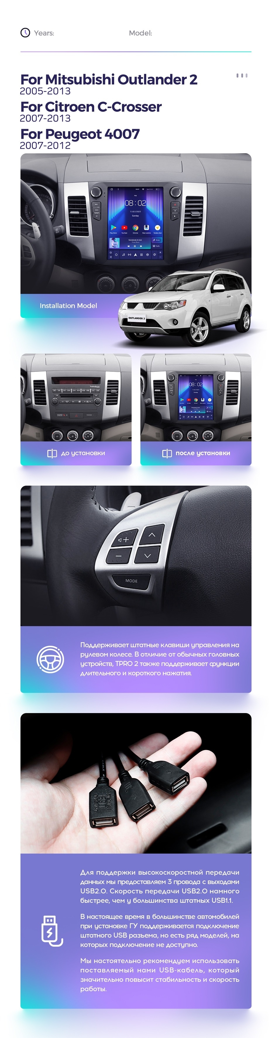 Полный комплект установки магнитолы Teyes с рамкой и проводкой можно выбрать в каталоге штатных магнитол Citroen C-Crosser 1 (2007-2013).